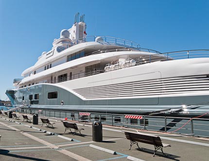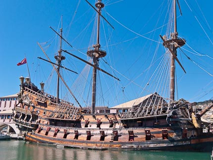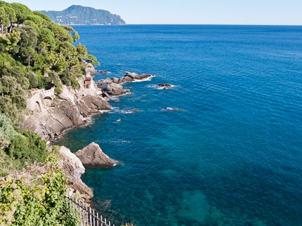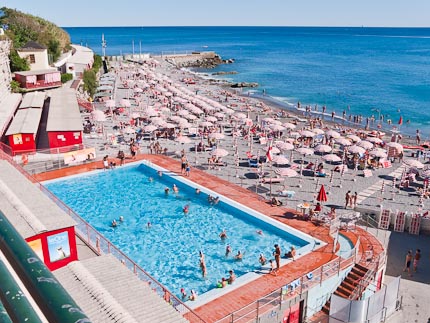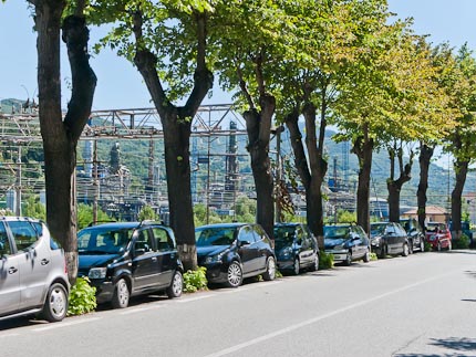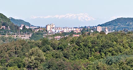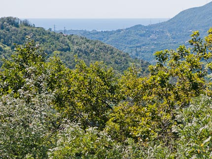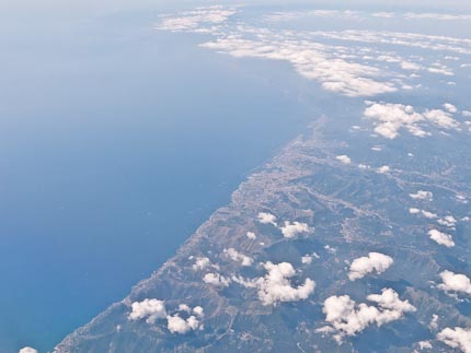 View of Genova, Italy. My bike route was through the mountains from right to left, to the coast in the center of town, and then along the coast to the bottom left of the photo. ^