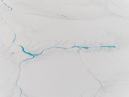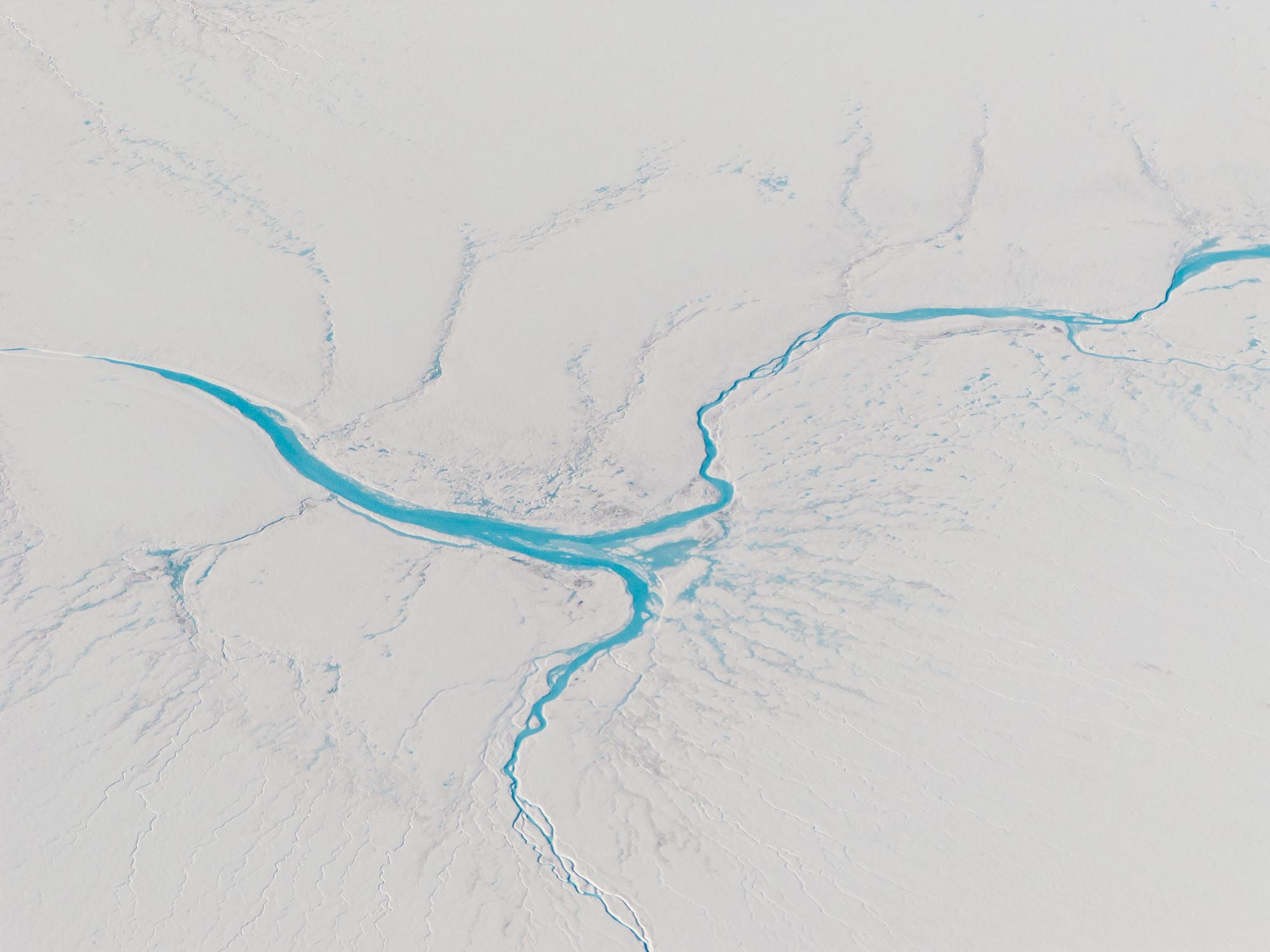 A view of supraglacial streams on the Greenland ice sheet. ^