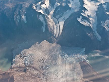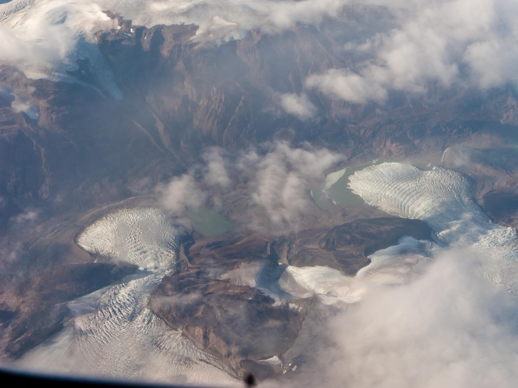 View of the glaciers on Baffin Island, Canada. Greenland and the northern Canadian islands are a spectacular landscape. I couldn't believe that everyone else in the First Class cabin had their window shades down. I just don't understand how people can be so dis-interested in the world around them. ^