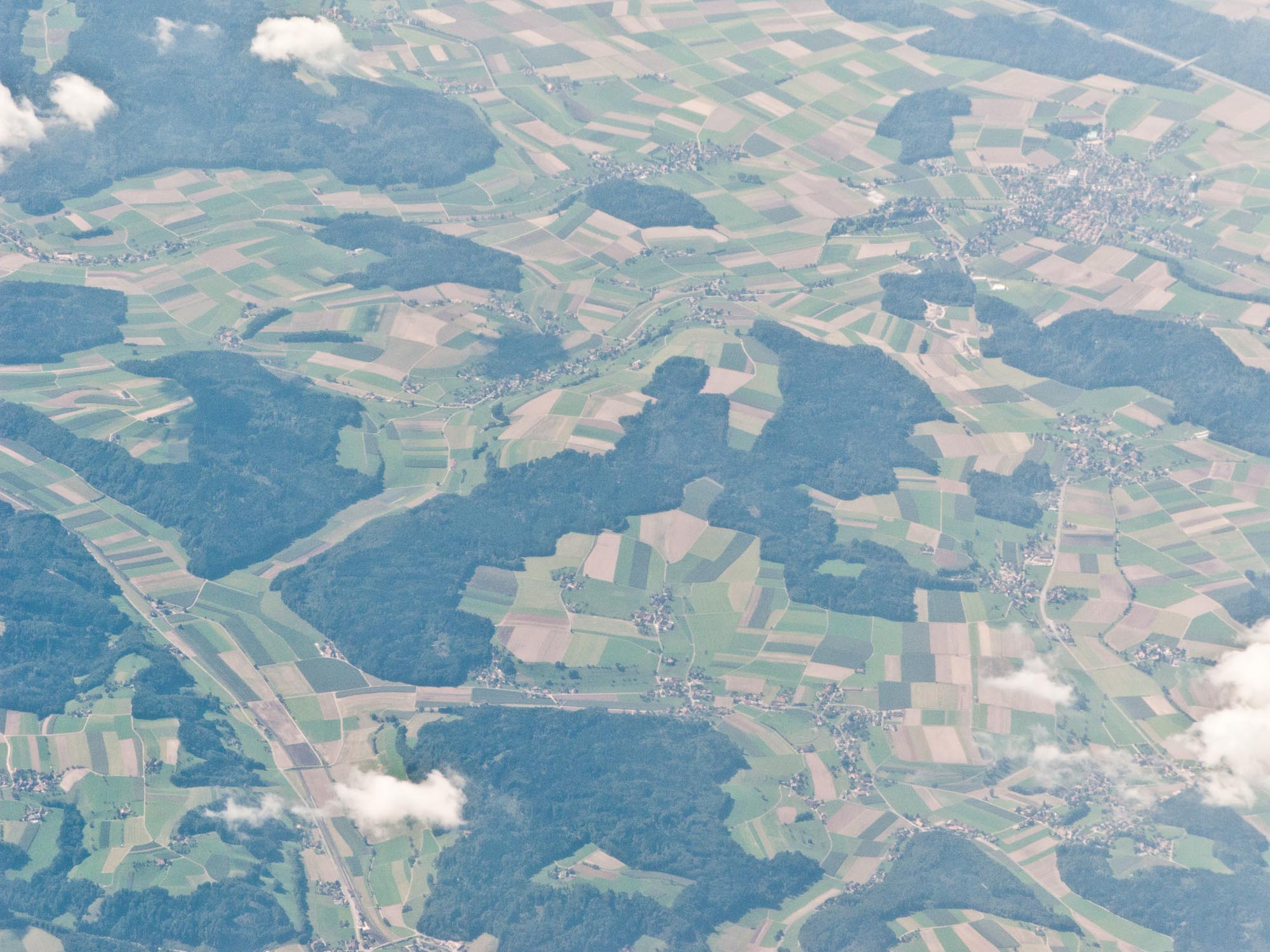 Somewhere over central Germany. The layout of European villages and farm fields is, I think, more visually appealing than the grid pattern that we have in the U.S. ^