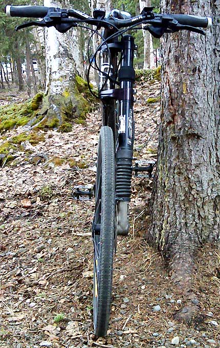 Front view of my funny-looking skinny tires (no, nothing's wrong with the fork - it's a Cannondale Lefty)