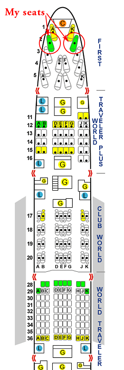 My First Class seats on a British Airways Boeing 747 from Los Angeles to London and from London back to Los Angeles