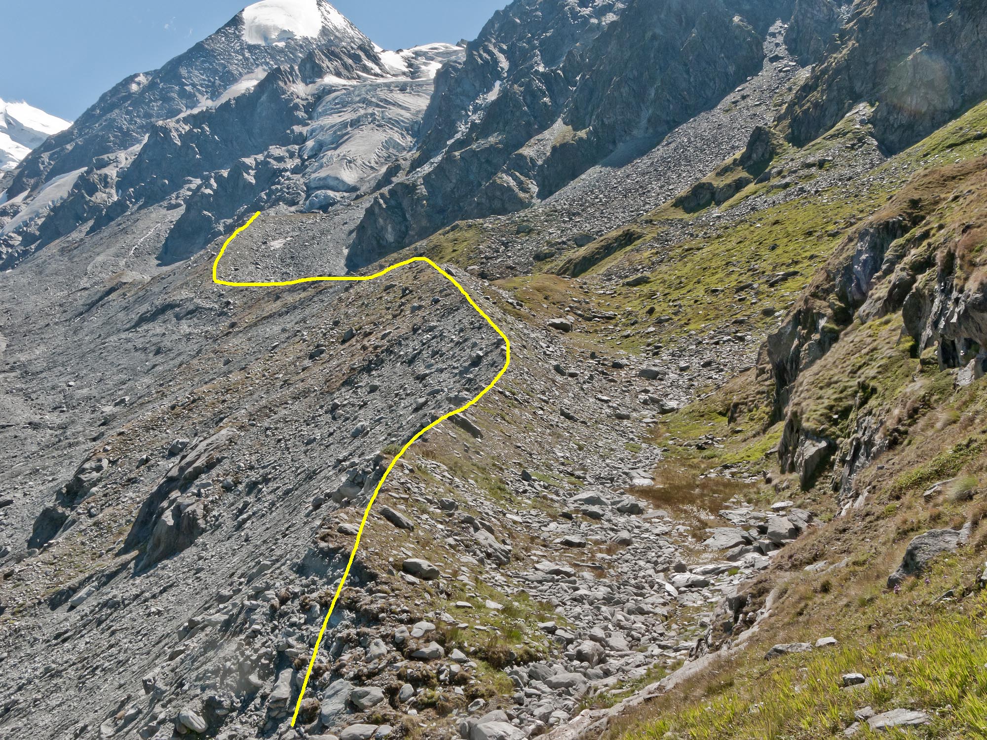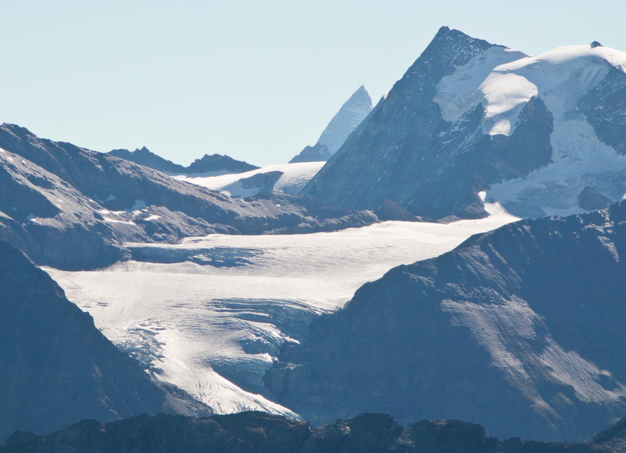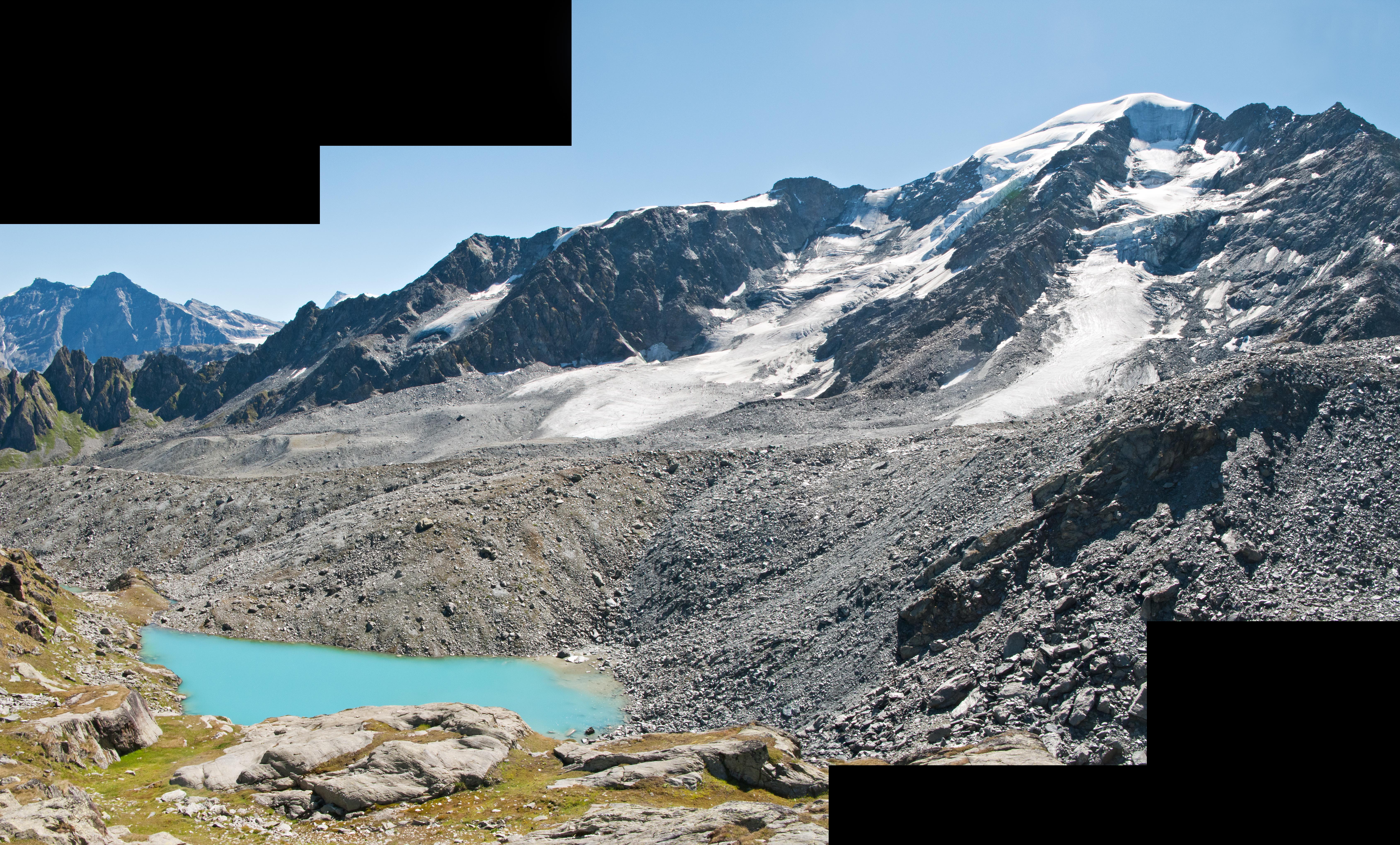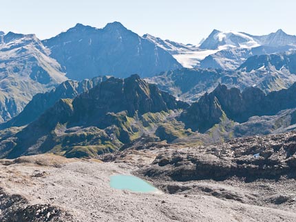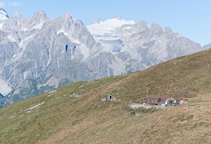 This view, from the Italian side of the pass, looks north to the hospice founded in 1049 by Saint Bernard of Menthon. This pass has been a strategic crossing point over the Alps for the past 2,000 years. Amazing. ^