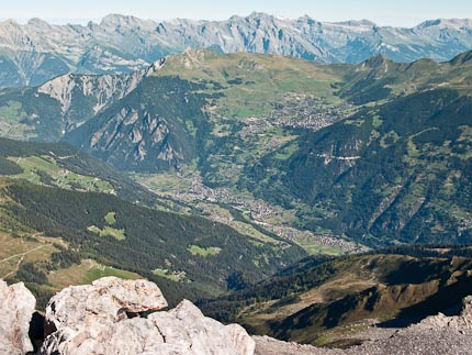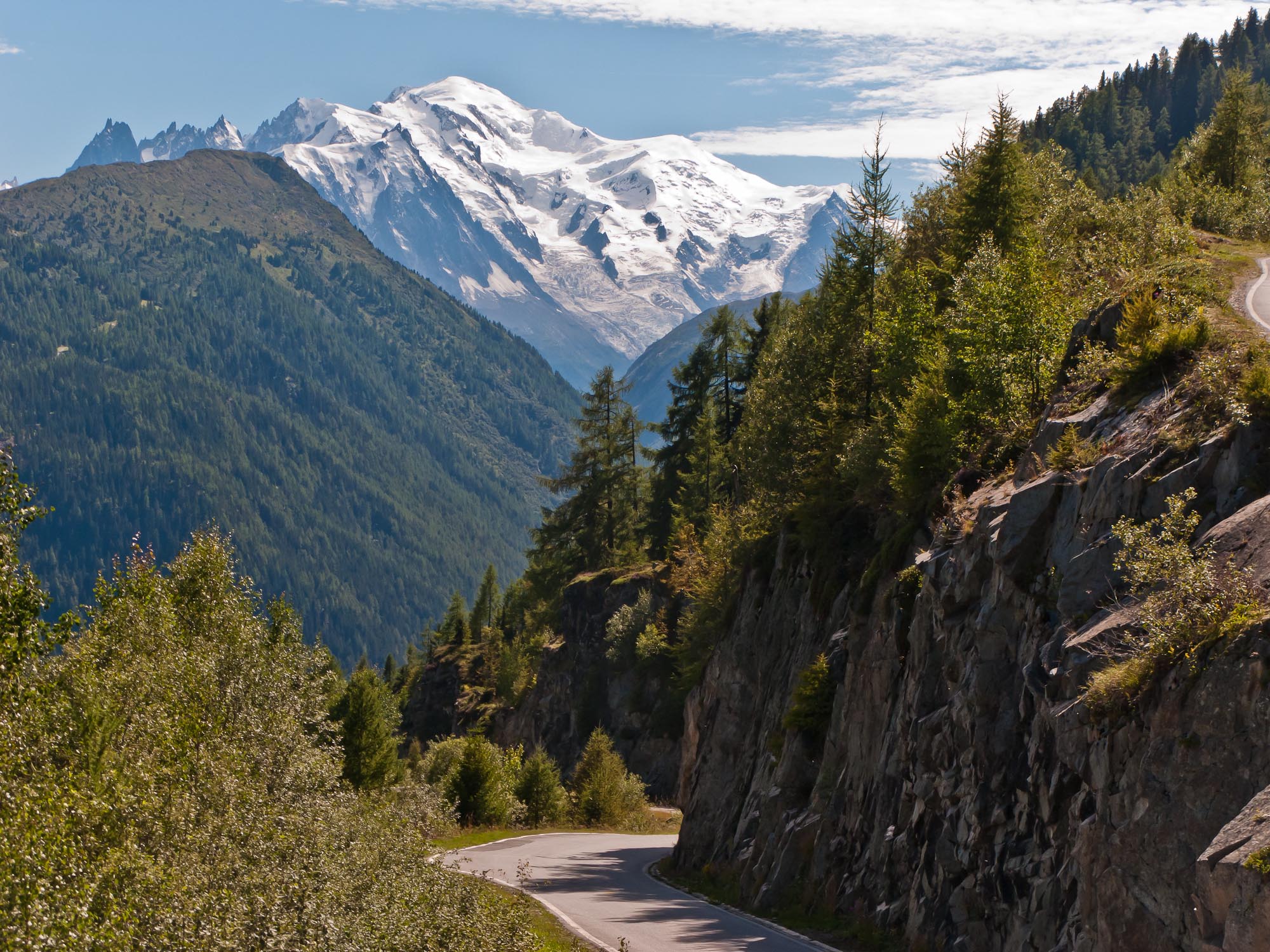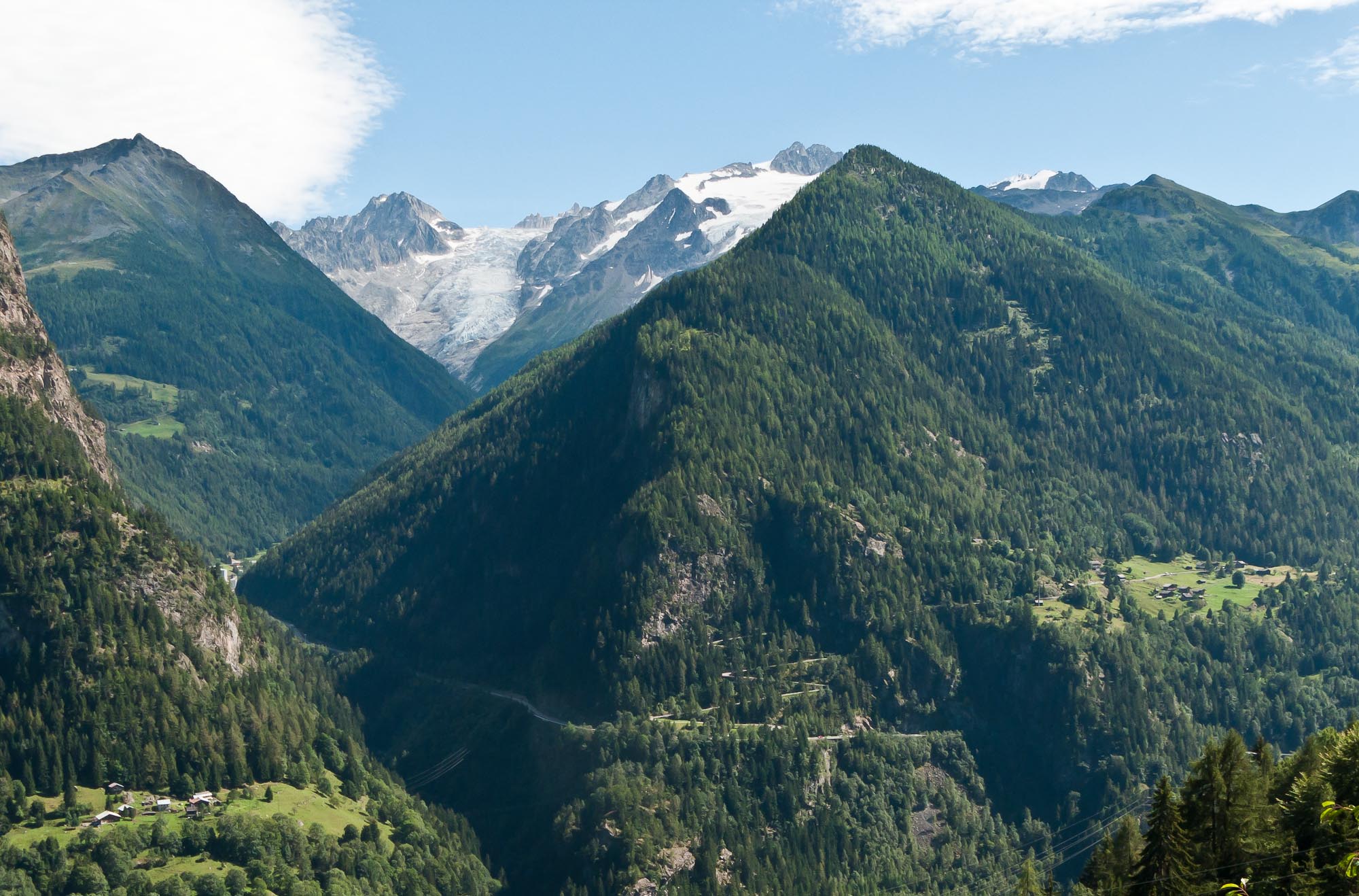 After Lausanne, we drove back to Martigny and then up to the Grand Saint Bernard Pass, on the border between Switzerland and Italy, and at an elevation of about 8,100 feet. I originally was planning to bike up to the pass, but that would have meant that I’d do it tomorrow, and the weather forecast was calling for 6-8 inches of new snow – not conducive to safe biking. Instead, I’ve decided to just ride down into Italy from the top of the pass today. So once we got to the pass, I unloaded my bike from the car and packed my gear, said my goodbyes to Florence and Jenny, and headed on down the road into Italy.