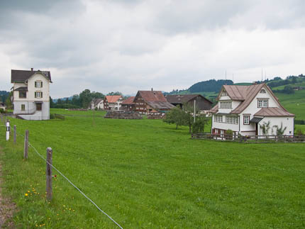 The climb up to Forclaz Pass from Martigny wasn’t too bad. Not a whole lot of traffic, and it was a nice wide road and not too steep, although it climbed 3,378 feet, 300 feet higher than the climb from Grindelwald to Grosse Scheidegg. The lower part of the road switchbacked up though steep vineyards, and several turnouts provided nice views of Martigny and the Rhone Valley stretching out to the east. Very nice view.